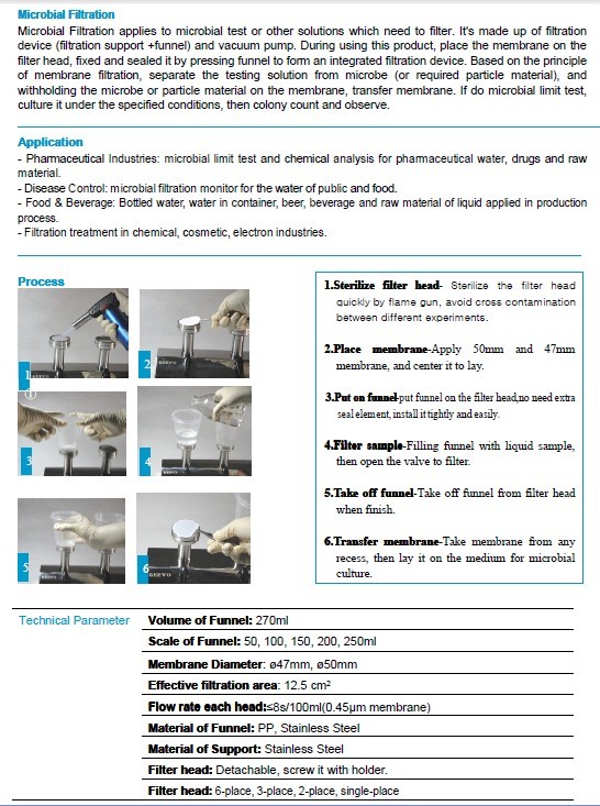 Main product: microbial filtration system, sterility test system, aseptic isolator, aseptic transfer, bench capper, pallet for closed canister, colony count, homogenizer, and so on